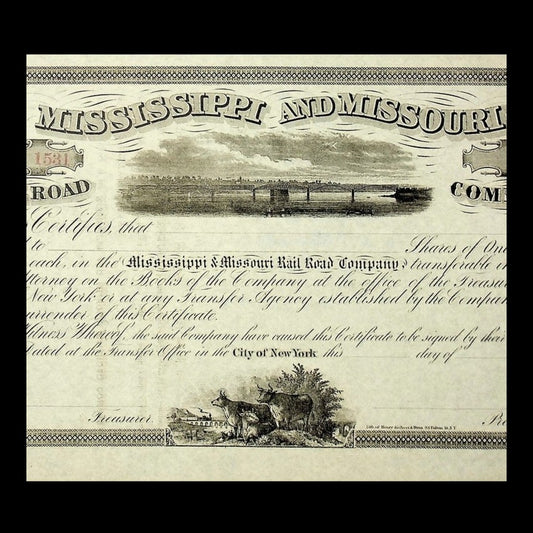 Mississippi and Missouri Rail Road Company Stock Certificate from 1800s