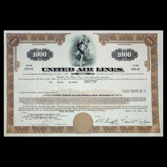 United Airlines Bond Certificate from 1960s/70s (Multiple colors)