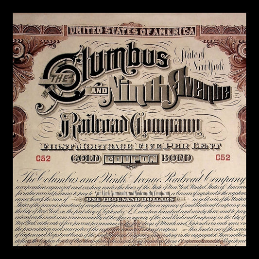 The Columbus and Ninth Avenue Railroad Company Bond from 1893