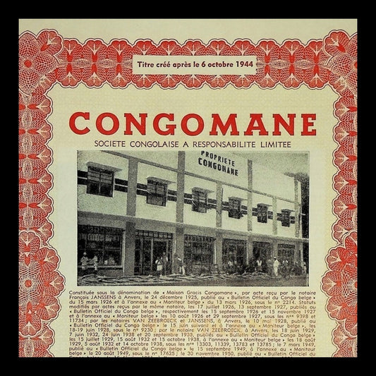 Congomane Societe Congolaise Stock Certificate from 1944 Belgian Congo Mining