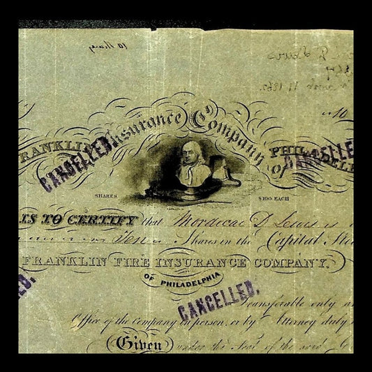 The Franklin Fire Insurance Company Stock Certificate from 1839