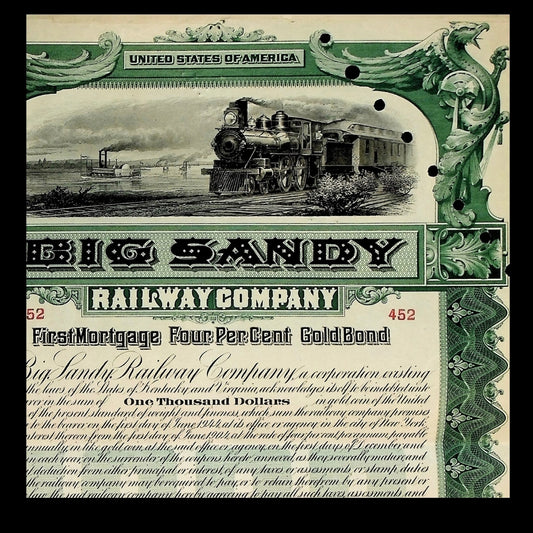 Big Sandy Railway Gold Bond Certificate from 1904 - Kentucky and West Virginia