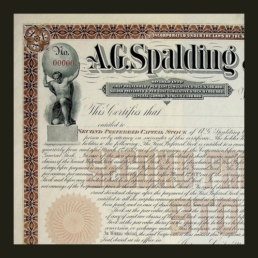 A. G. Spalding & Bros Stock Certificate Specimen early 1900s