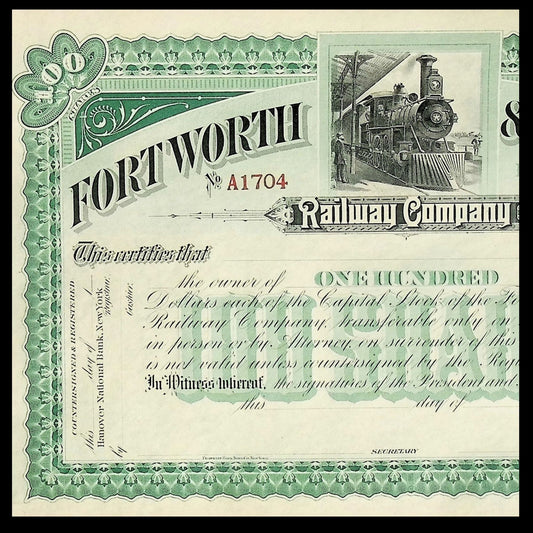 Forth Worth & Rio Range Railway Company Unissued Stock Certificate early 1900s