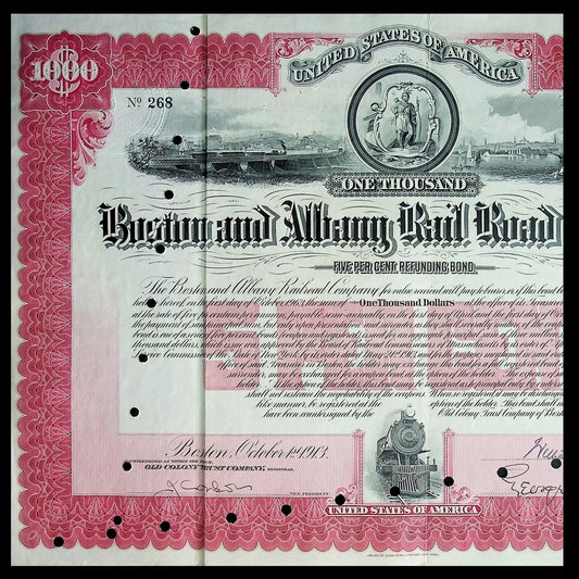 Boston and Albany Rail Road Company Bond from 1913