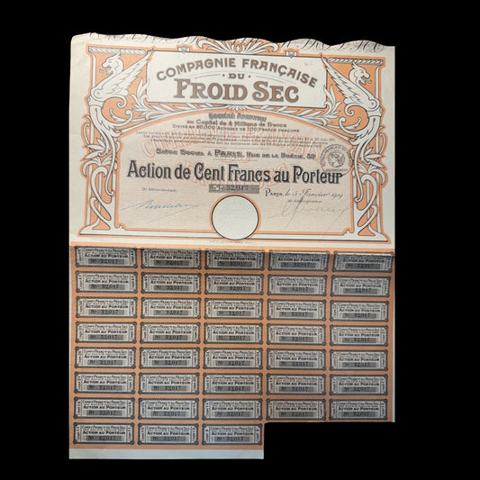French Refrigeration Company (Compagnie Française du Froid Sec) Stock Certificate from 1919