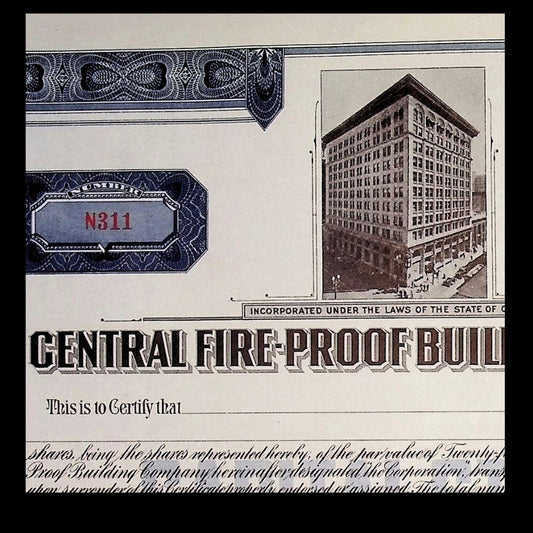 Central Fireproof Building Company California Unissued Stock Certificate from 1915