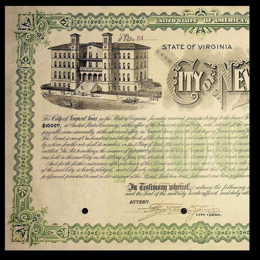 City of Newport News, Virginia Bond from 1917 Signed By Mayor