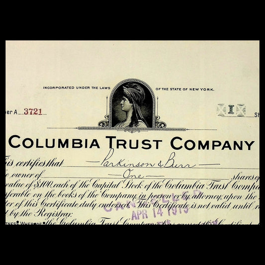 Columbia Trust Company Stock Certificate from 1919