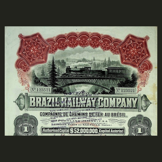 Brazil Railway Company Stock Certificate from 1919 with coupons