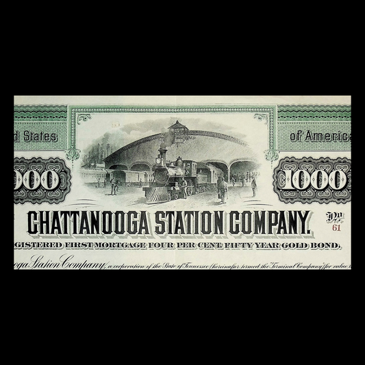 Chattanooga Station (now Union Depot) Company Gold Bond from 1912 for $1,000