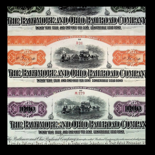 Baltimore & Ohio Railroad Gold Bond Certificates - 3x Combo Pack from 1913 - 1925