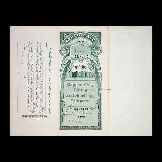 Copper King Mining and Smelting Co (Idaho) Stock Certificate from 1919
