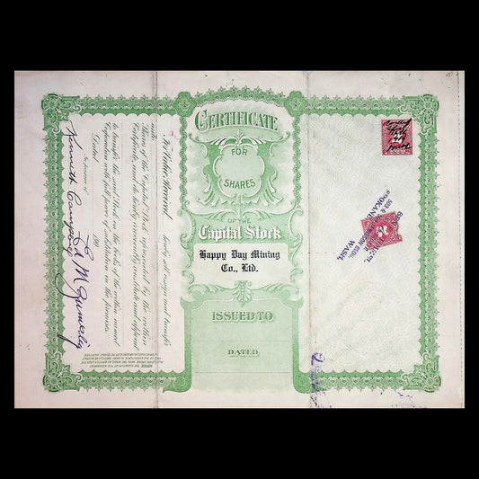 Happy Day Mining Company Limited Stock Certificate (Idaho) from 1915
