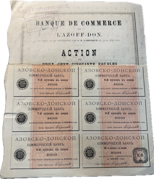 Commercial Bank of Asow-Don (St Petersburg, Russia) Stock Certificate from 1914