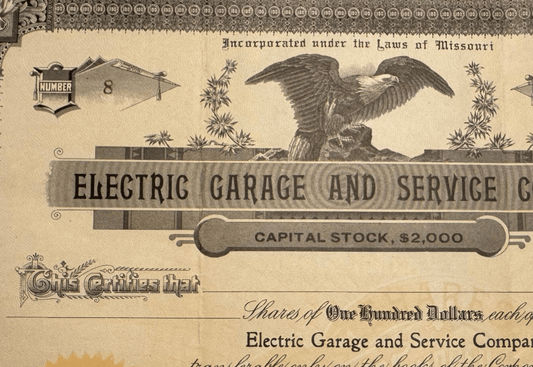 Electric Garage and Service Company Stock Certificate from St Louis, Missouri - 1912
