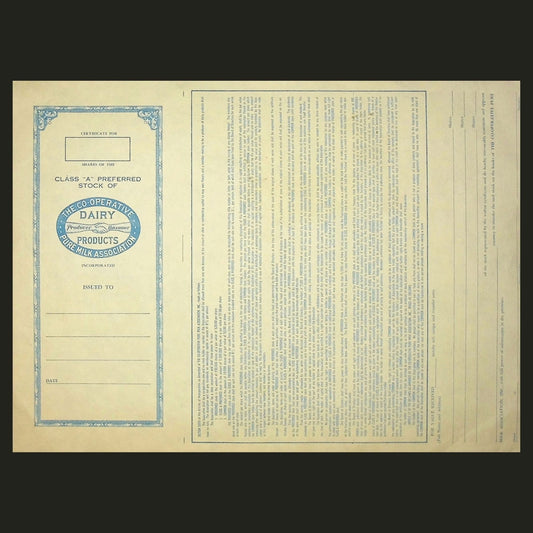 The Co-Operative Pure Milk Association Inc, Stock Certificate from 1920s Unissued