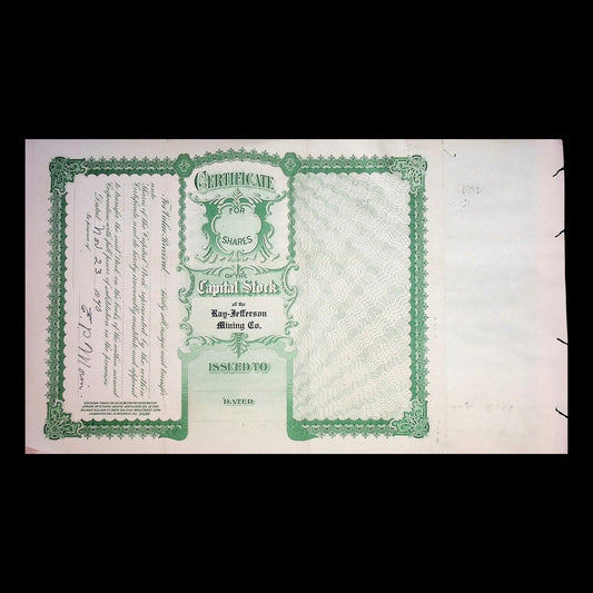 Ray-Jefferson Mining Company Stock Certificate from Idaho 1920s