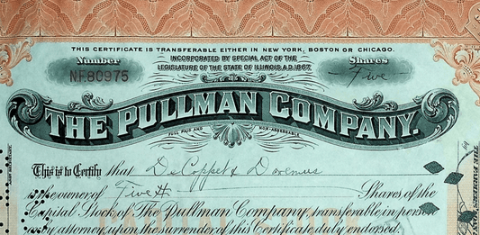 The Pullman Company Stock Certificate from 1925 (Luxury Train Cars)