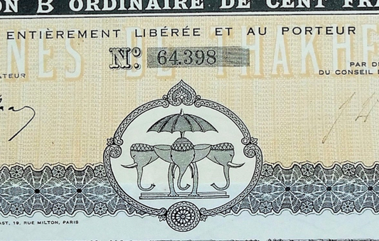 Mines de Thakhek (French mining Laos/ Indochina) from 1928 Stock Certificate
