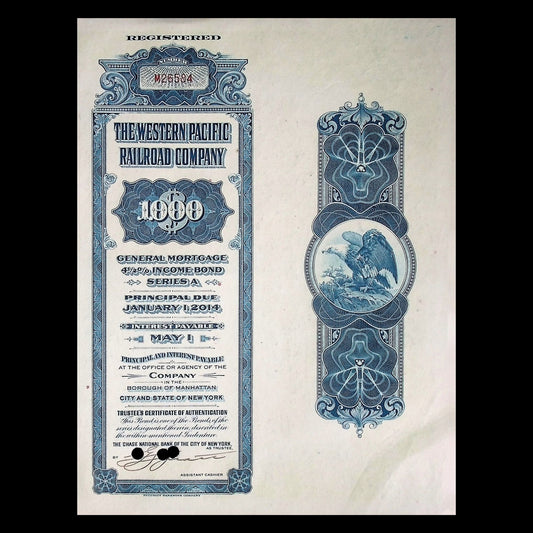 The Western Pacific Railroad Company Bond Certificate from 1947
