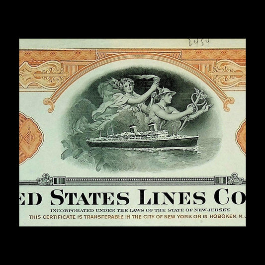 United States Lines (Maritime shipping) Company Stock Certificate from 1940s - Two colors