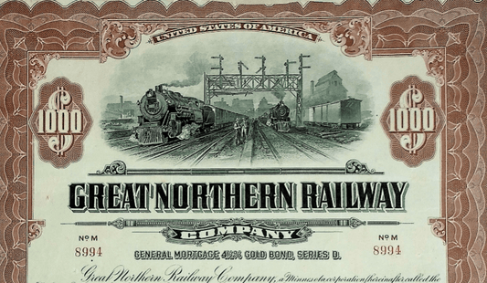 The Great Northern Railway Company Bond Certificate from 1946 (Saint Paul to Seattle)