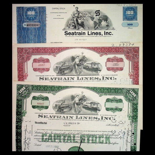 Seatrain Lines Inc Stock Certificate from 1950 - 1960 with Train and Ship