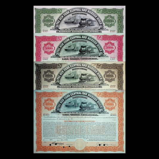 New York Central and Hudson River Railroad Company Bonds from 1950s (6 color options)