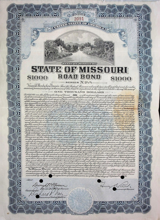 State of Missouri Road Bond Certificate