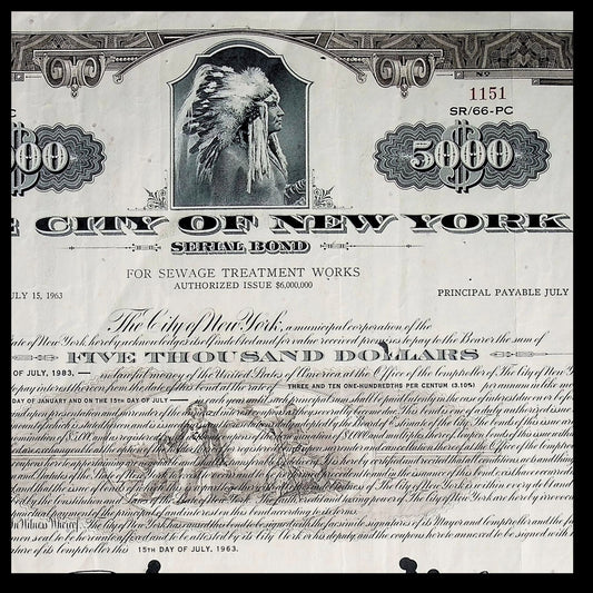 City of New York Bond Certificate from 1960s