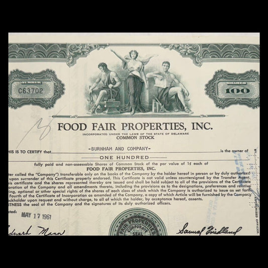 Food Fair Stores Stock Certificate from 1960s
