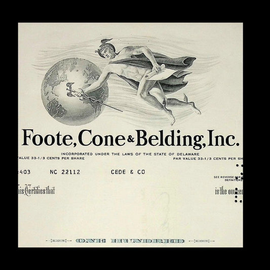 Foote, Cone & Belding (Now IPG/ FCB Advertising Agency) Inc Stock Certificate
