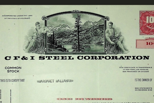 CF&I (Colorado Fuel and Iron) Steel Corporation Stock Certificate from 1969