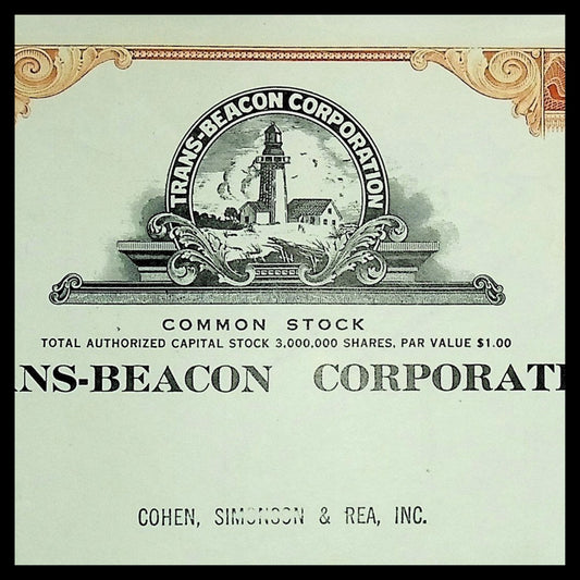Trans-Beacon Corporation (Howard Hughs Movie Theaters) Stock Certificate 1960s