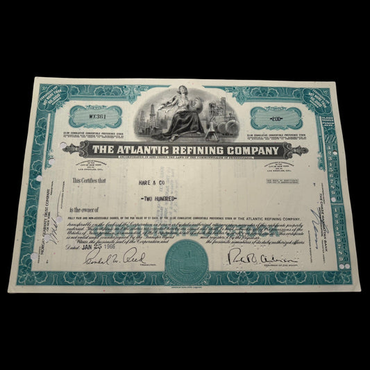 The Atlantic Refining Company (now BP) Stock Certificate from 1960s