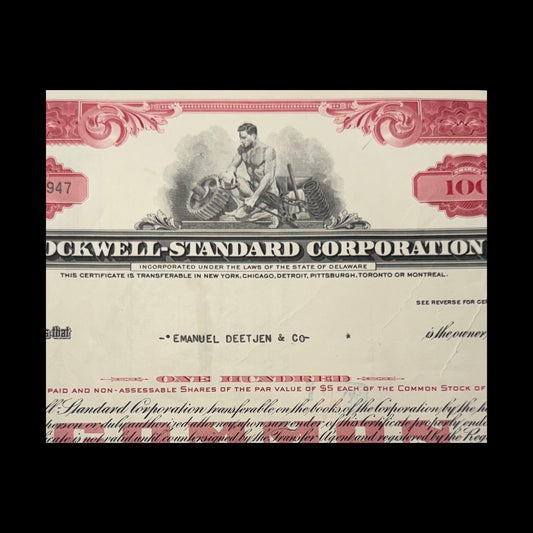 Rockwell-Standard (now Boeing) Corporation Stock Certificate from 1967