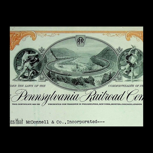 The Pennsylvania Railroad Company Stock Certificate (with Horseshoe Curve design) from 1960s