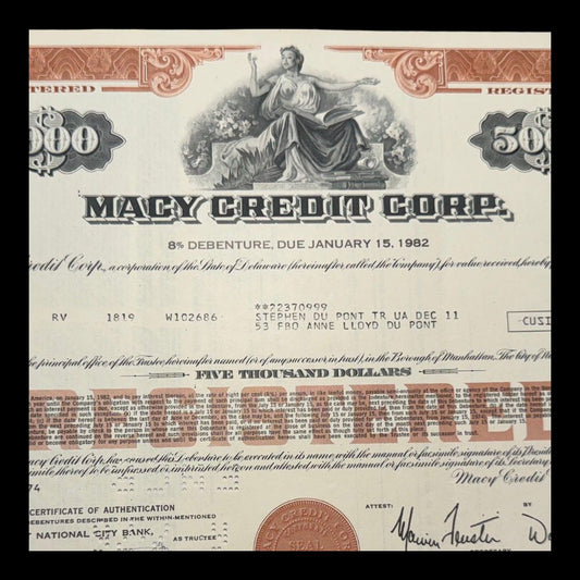 Macy Credit Corporation Bond Certificate ($5,000)