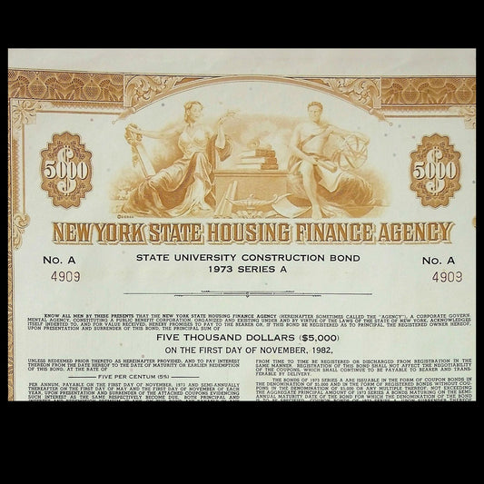 New York State Housing Authority Bond Certificate from 1970s
