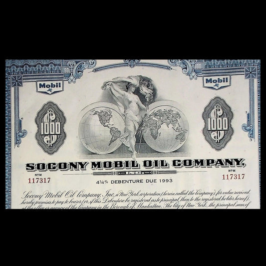 Socony Mobil Oil Company Bond Certificate from 1963 with coupon sheet