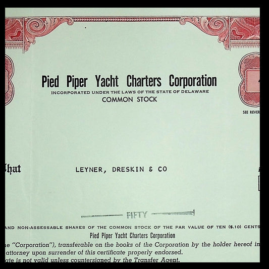 Pied Piper Yacht Charters Corporation Stock Certificate