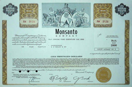 Monsanto (now Bayer) Bond Certificate 1970s