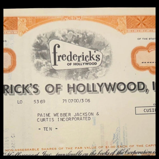 Fredrick's of Hollywood Stock Certificate from 70s (Women's Lingerie Store in LA)