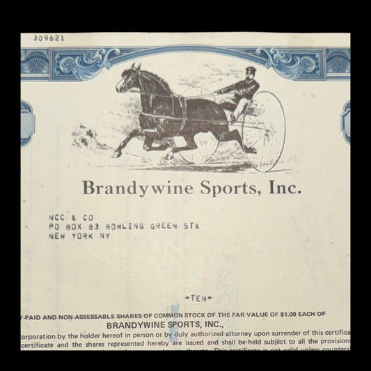 Brandywine Sports, Inc Stock Certificate from 1970s Horseracing
