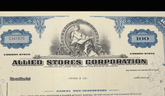 Allied Stores Corporation (now Macy's) 1970 Stock Certificate