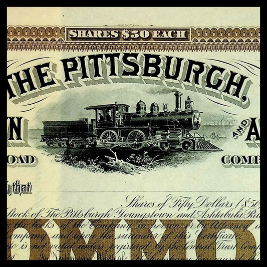 The Pittsburg, Youngstown and Ashtabula Unissued Stock Certificate 1800s