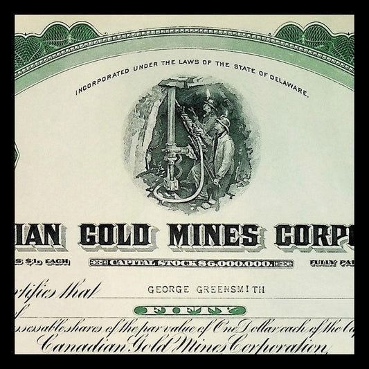 Canadian Gold Mines Corporation Stock Certificate from 1920s