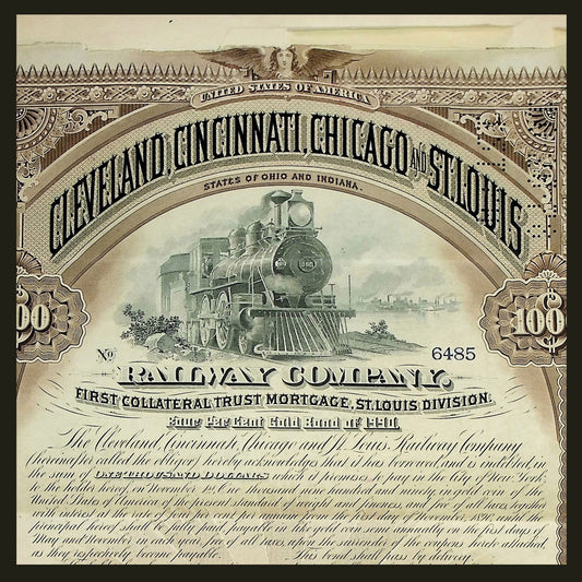 The Cleveland, Cincinnati, Chicago and St Louis Railway Company Bond for $1000 from 1890