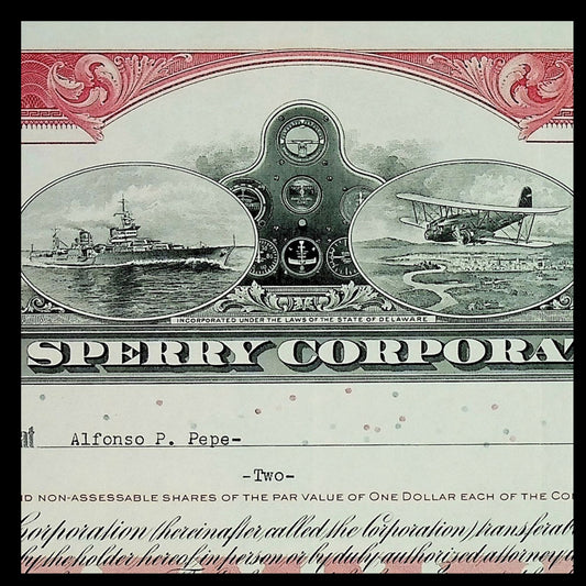 Sperry Corporation Stock Certificate from 1940s (Red)